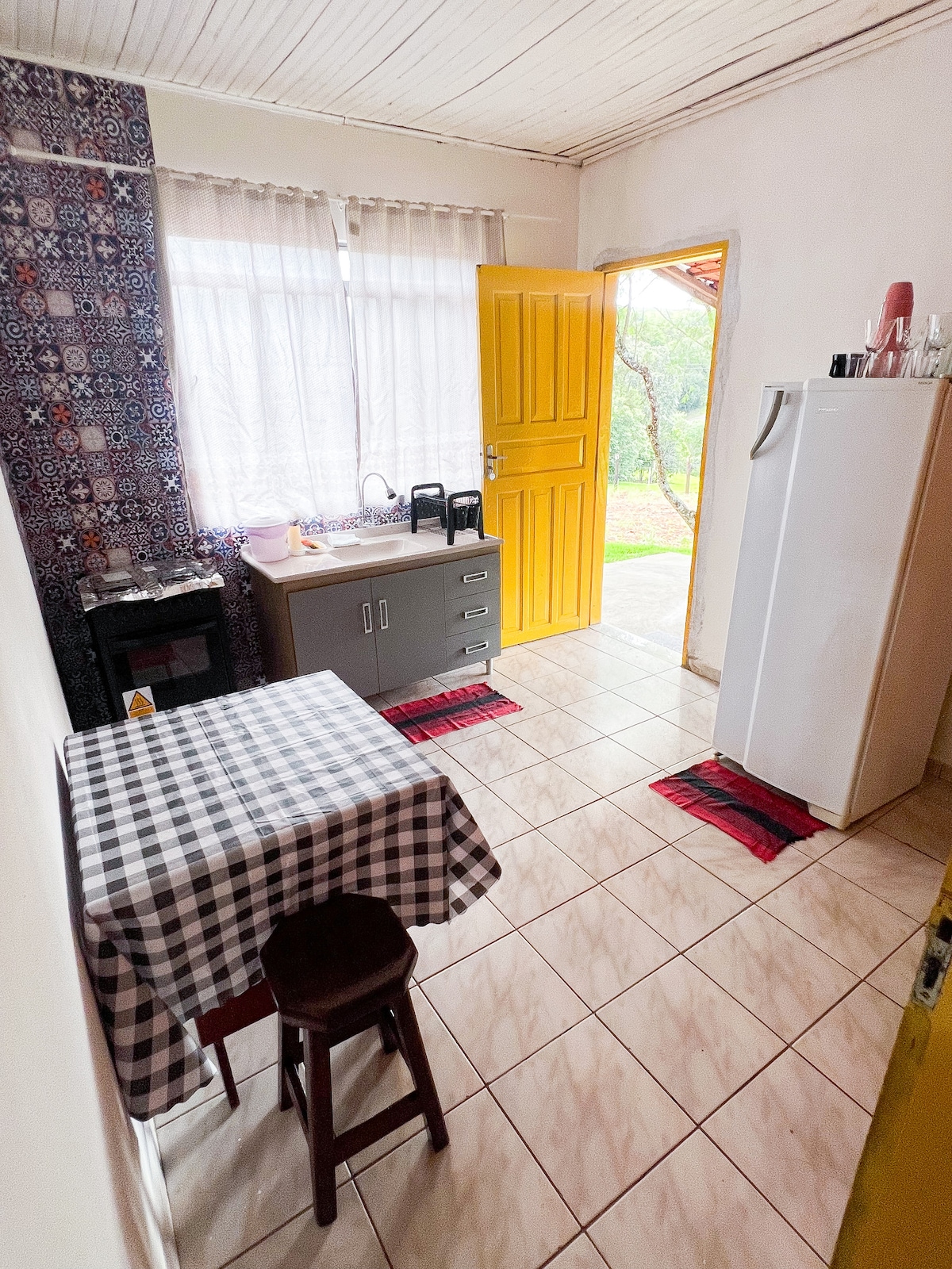 Chalet de style rustique situé dans le quartier Lambari, municipalité de Sapopema, à environ 15 km de Pico Agudo. La région offre d'excellentes options de tourisme rural local telles que des cascades et des sentiers au milieu de la nature. Vous aurez un immense espace vert, vous pourrez camper et profiter des nuits charmantes de l'intérieur. Nous avons un grand espace extérieur, nous offrons également un guide pour de courtes randonnées. Dans l'espace extérieur, il y a aussi un kiosque avec barbecue, table et bancs.