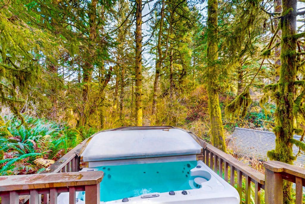 Détendez-vous sur la terrasse et profitez du jacuzzi. Admirez les magnifiques couchers de soleil, les bateaux de pêche sur la rivière Rogue ou les vagues lointaines de l'océan. Vous pouvez tout voir. Cette charmante cabane meublée sur la chambre est un endroit merveilleux pour une escapade. Cette cabane est à quelques minutes du port et de la plage, ainsi que près des sentiers de randonnée et de la ville.