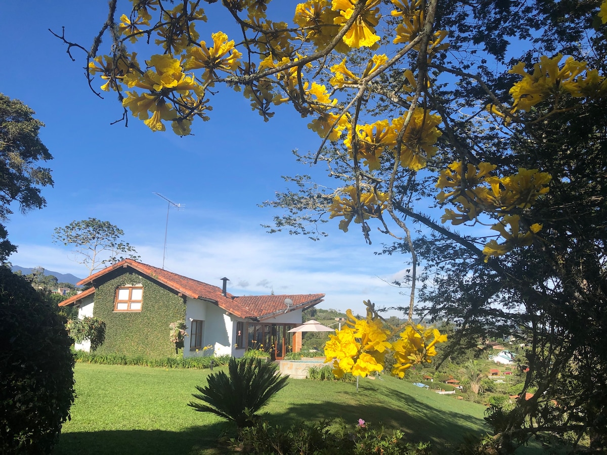 Chalet indépendant, idéal pour 2 personnes, dans un climat frais et entouré par la nature. Parfait pour se détendre, avec une cheminée, le Wi-Fi, une télévision, un filet suspendu et un jardin secret qui attire les oiseaux et les papillons. Si vous avez de la chance, vous pourrez peut-être cueillir un avocat frais sur l'arbre. Un espace paisible pour des voyageurs sereins. Si vous le souhaitez, vous pouvez profiter d'agréables conversations avec les hôtes.