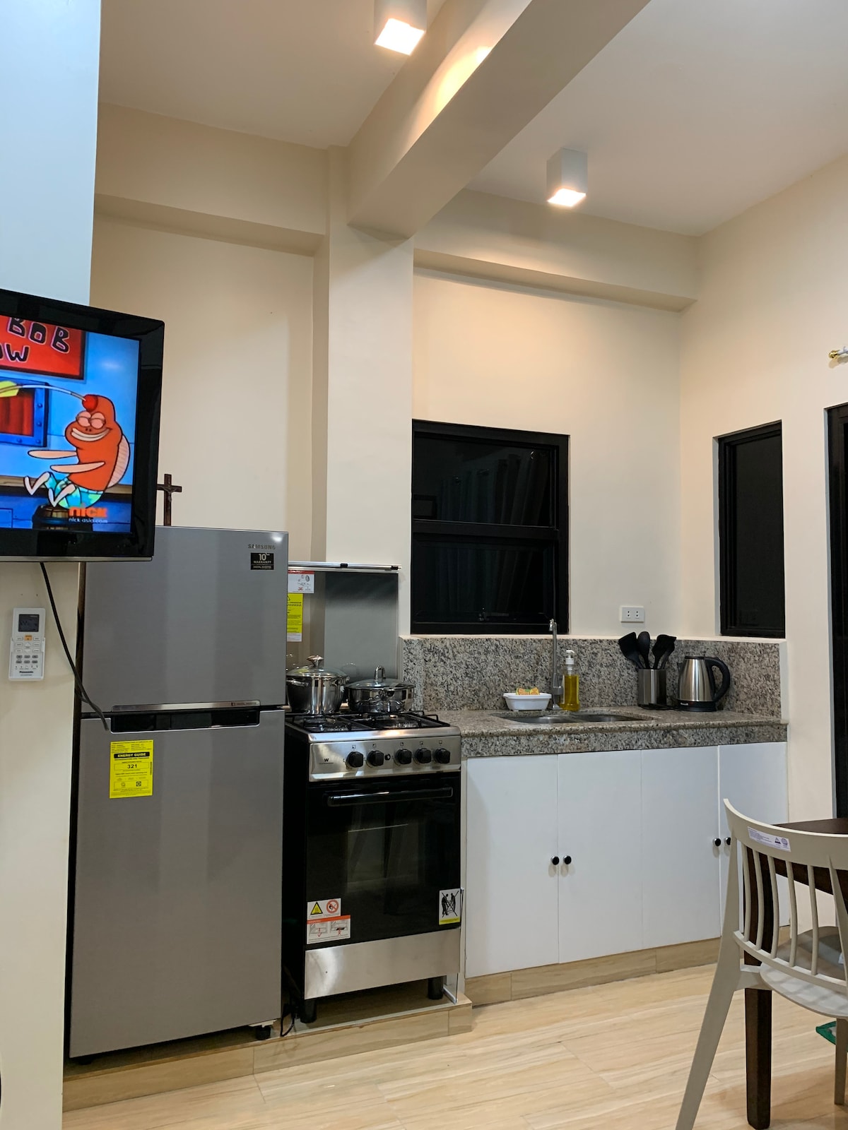 Climatisation plus grande et meilleure ! Nous écoutons les commentaires de nos clients et avons mis à jour notre système de climatisation. Le Wifi PLDT Fiber est toujours allumé car il est connecté à l'énergie solaire ! Détendez-vous dans ce logement calme et élégant. Rare à cet endroit.