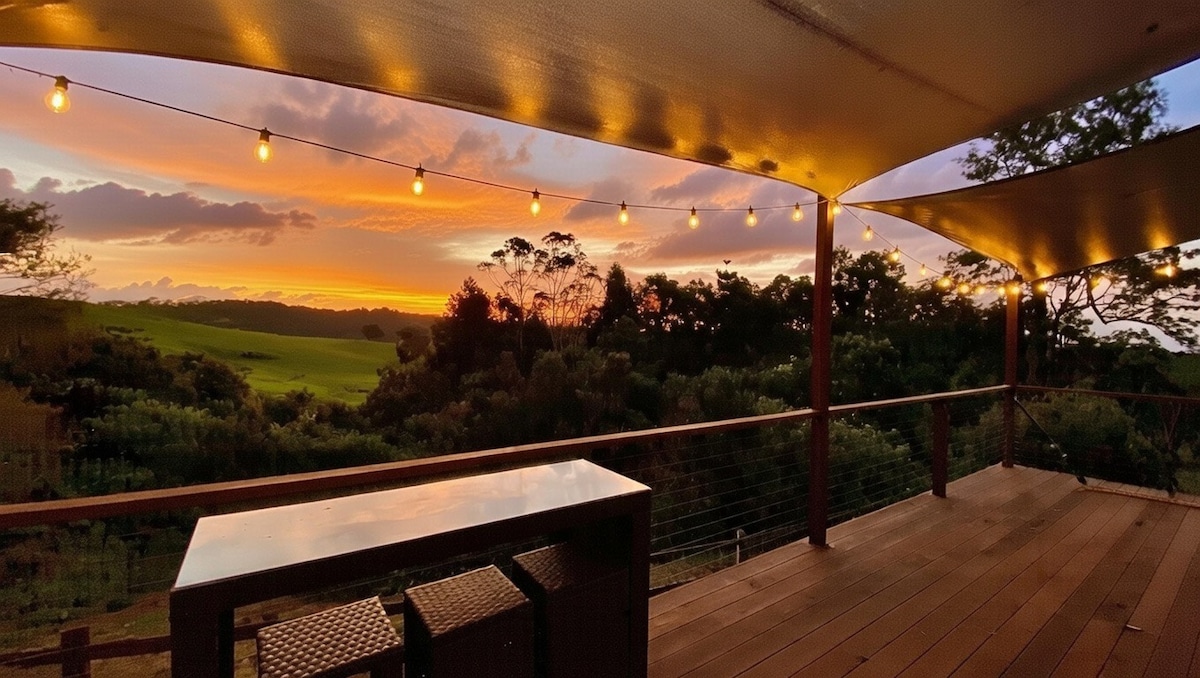 Évadez-vous au Mountain Chalet By Humble Abode, notre superbe chalet en forme de A niché au cœur de la forêt tropicale de Tamborine Mountain. Profitez d'une vue panoramique depuis une terrasse arrière suspendue à 4 mètres au-dessus du sol, détendez-vous dans le jacuzzi extérieur et restez confortable près de la cheminée. Avec des appareils intelligents partout, des jeux sur pelouse et des jeux de société, il y a beaucoup à apprécier. À seulement 7 minutes de la célèbre Gallery Walk, notre retraite est soigneusement conçue pour la détente avec des fonctionnalités adaptées aux personnes handicapées.