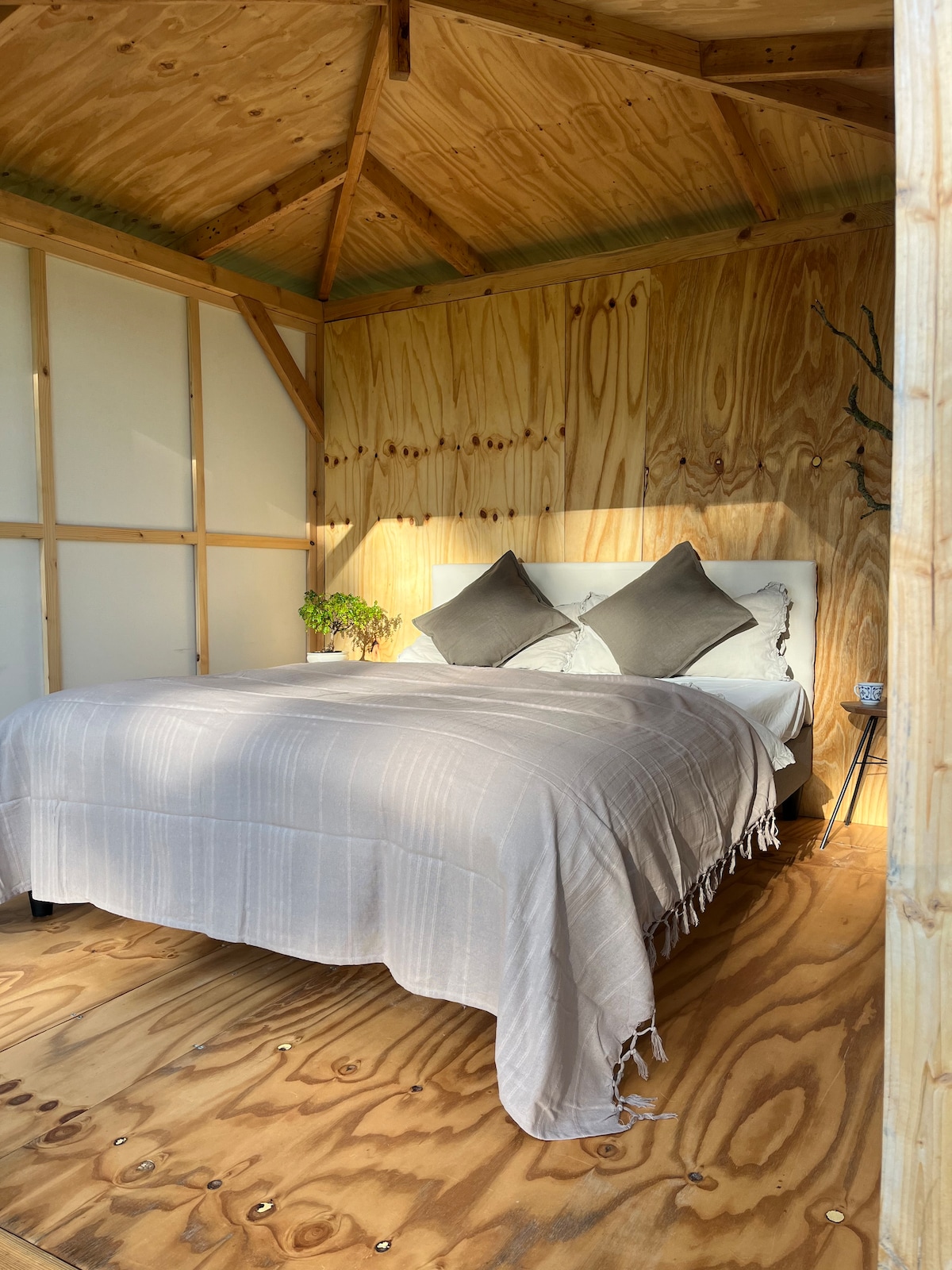 Genieße die Klänge der Natur wenn du in dieser besonderen Unterkunft in der mecklenburgischen Seenplatte übernachtest. Innen wurden nur feinste Materialien und Putze verwendet. Nichts ist überladen oder verbastelt - hier kannst du durchatmen, die Natur genießen, im See baden (5 min zu Fuss), direkt vor dem Häuschen einen Hike beginnen oder mit dem Rad vom Grundstück aus starten und um den See radeln ... am Abend schlummerst du vorm Gußeisernen Kamin friedlich in eine Wolldecke gekuschelt ein ...