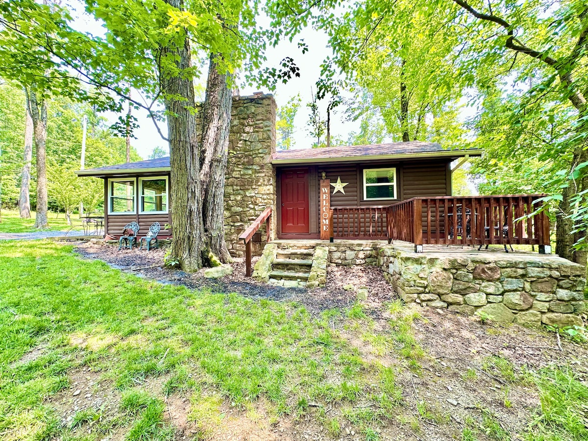 Vous adorerez notre chalet dans les bois avec de nombreux équipements à apprécier ! ⇒Jacuzzi SAUNA ⇒extérieur Télévision connectée de⇒ 50 pouces (2) ⇒Deux lits King Size ⇒Calme, privé ⇒Foyer extérieur avec bois de chauffage Porche ⇒avant avec sièges Cuisine ⇒entièrement équipée. ⇒Gril au propane Weber Terrain boisé de⇒ 2 acres À 15 à 30 minutes : ⇒Centre-ville de Lancaster ⇒Harrisburg ⇒Hershey/Hersheypark Nourriture ⇒incroyable ! ✭« Tyler a été l'un des hôtes les plus réactifs que nous ayons jamais eu. »✭