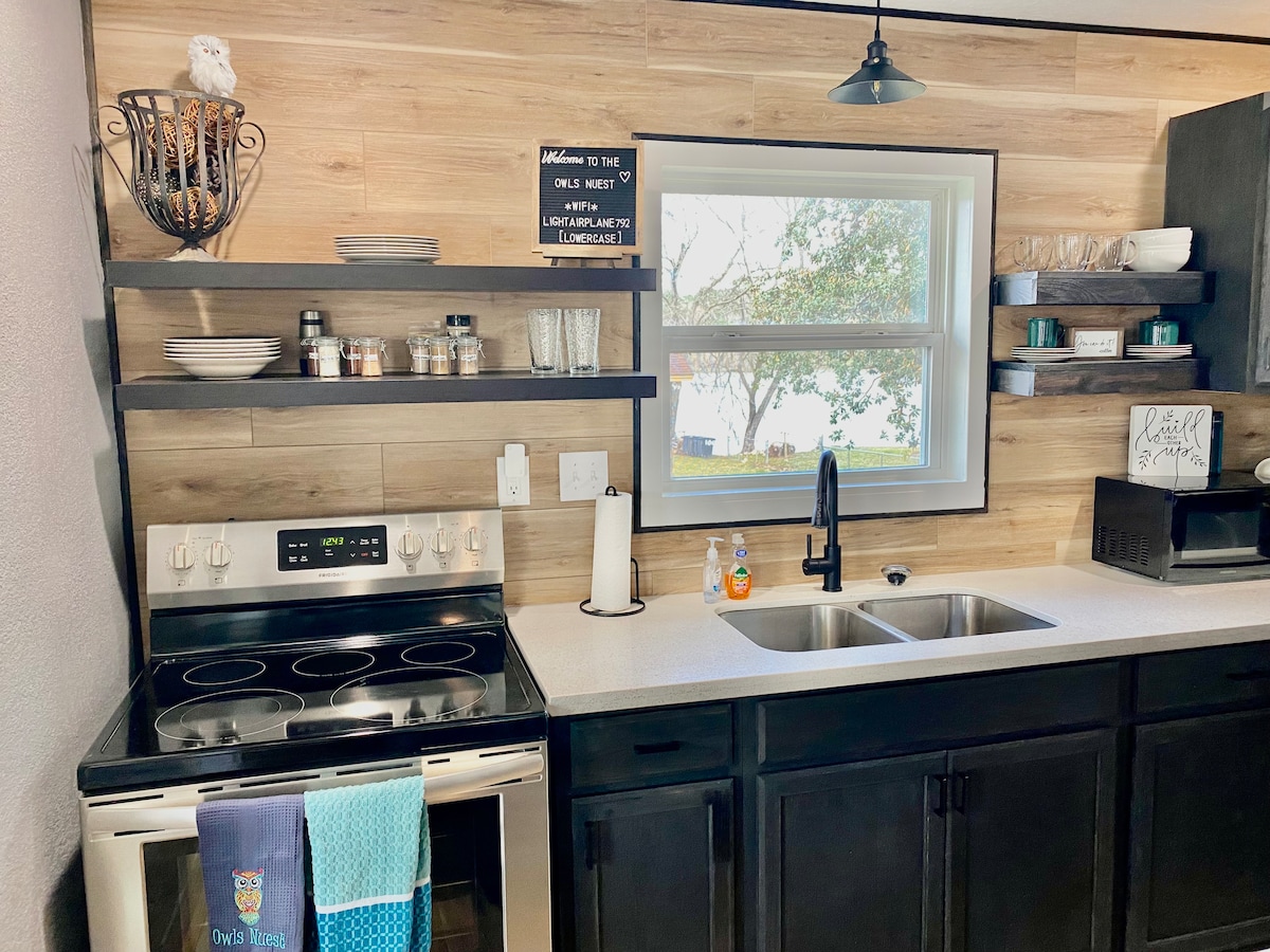 Owls Nuest est une maison moderne de 2 chambres et 1 salle de bain avec un couchage confortable pour 5 personnes à quelques pas du bord de l'eau. Assis haut dans les arbres avec une multitude de fenêtres, vous avez l'impression d'être dans une cabane dans les arbres surplombant le lac. Accès à l'ensemble de la maison avec arcade, pédalo, 2 nouveaux kayaks sur une plate-forme motorisée pour descendre dans l'eau, gilets de sauvetage, terrasse de 550 pieds carrés avec deux grandes chaises longues, gril à gaz, foyer, laveuse/sécheuse, douche extérieure, jeu en plein air, vélos et terrain clôturé pour chien !