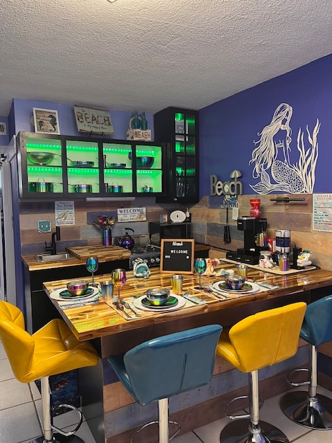 EMPLACEMENT ! EMPLACEMENT ! Vous allez adorer ce chalet de plage décontracté avec un peu de moderne et un peu zen jeté ! Propreté étincelante, à seulement 5 min à pied de la plage, à un demi pâté de maisons de l'activité Main Street plus une vue sur la rivière ! Axé sur la détente et l'amusement, prévoyez de trouver des équipements uniques ! Alexa, miroir de salle de bain Bluetooth avec paramètres de maquillage, douche de massage, chaise de massage, cheminée électrique allumée, vanité lumineuse. (J'adore les gadgets !) Nintendo rétro, jeux de société, livres !