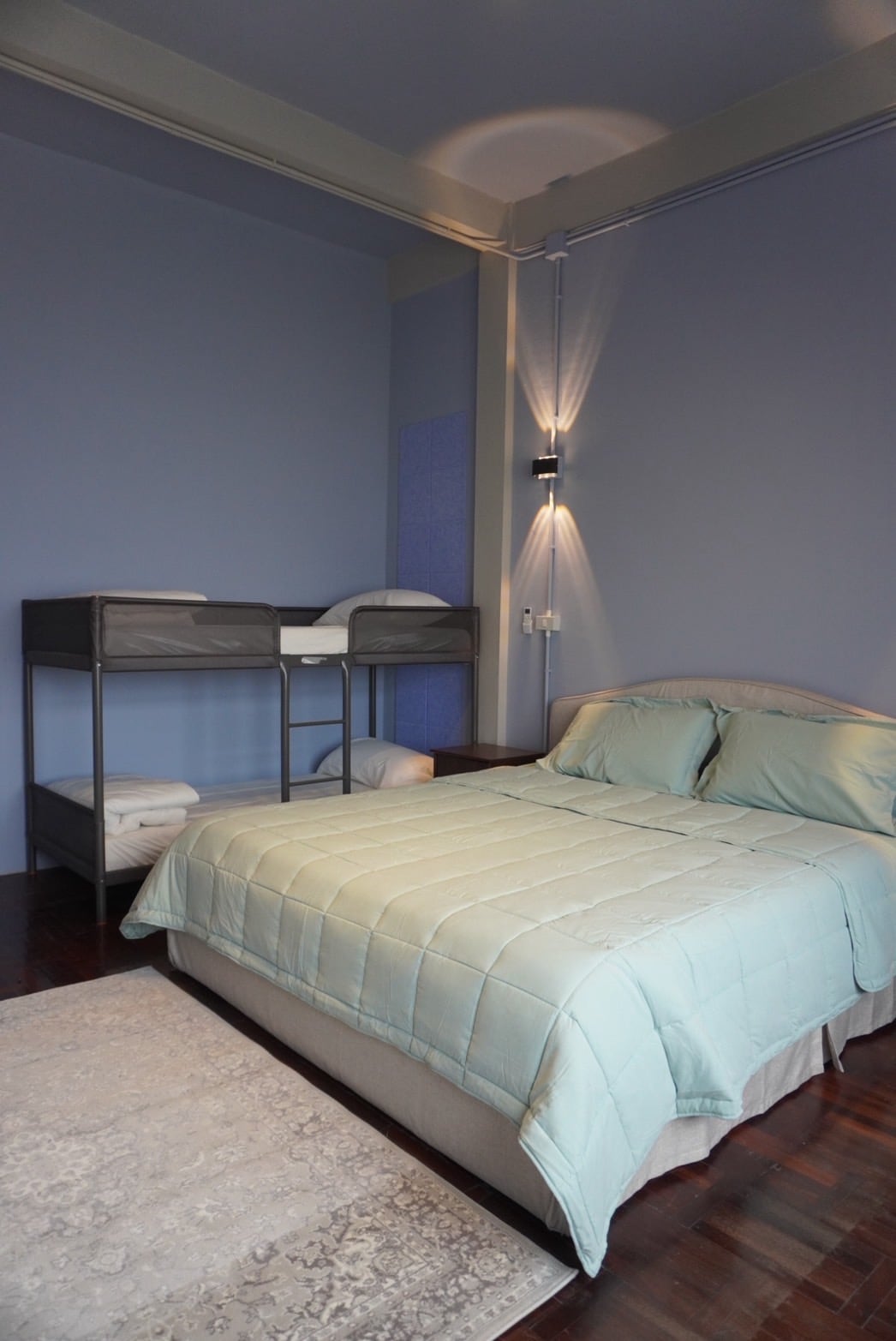 We are proud to present to you YaiMak, a collaboration project between 3 friends with passions in design and hospitality. Your space is a studio suite on the second floor of our newly renovated SUPER LARGE building in the middle of Bkk, with your own private on-suite bathrooms, TV, fast WIFI and large bed. Your suite is part of a bigger complex with full access to a rooftop garden+kitchen, private + co-working space and lots of games! Free baggage storage & free cleaning are included :)