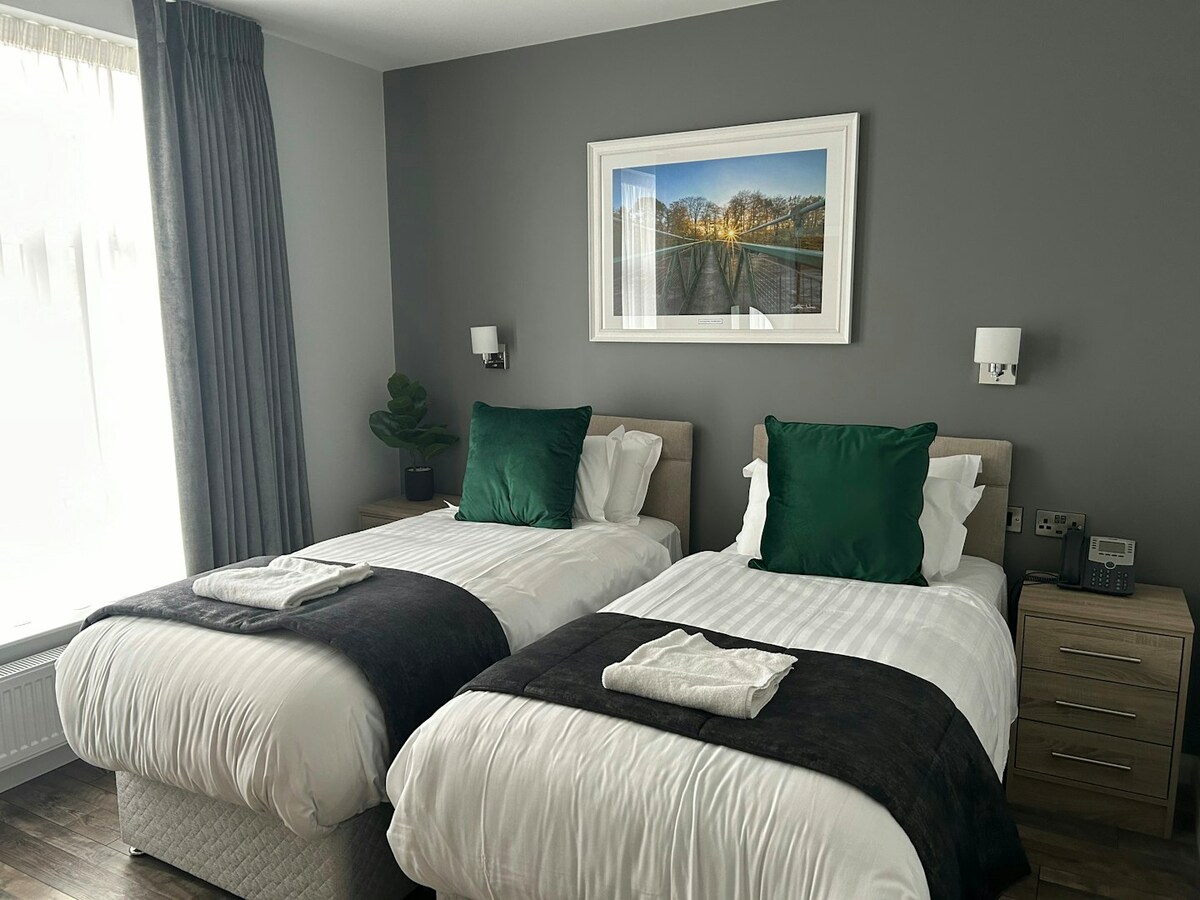 Il y a des chambres doubles avec lits jumeaux, des chambres super king size et des chambres à accès pour personnes à mobilité réduite qui sont conçues avec des tons frais avec une touche de couleur, y compris une photo des meilleurs monuments de la région de Strabane, idéales pour les séjours d'affaires et privés. Un ascenseur est accessible pour arriver au rez-de-chaussée, où se trouve notre restaurant. Une grande variété de plats sont disponibles de 12 h à 21 h, ainsi que nos nombreux cocktails savoureux adaptés à un repas romantique pour deux, des repas en famille ou des fêtes/ occasions plus importantes.