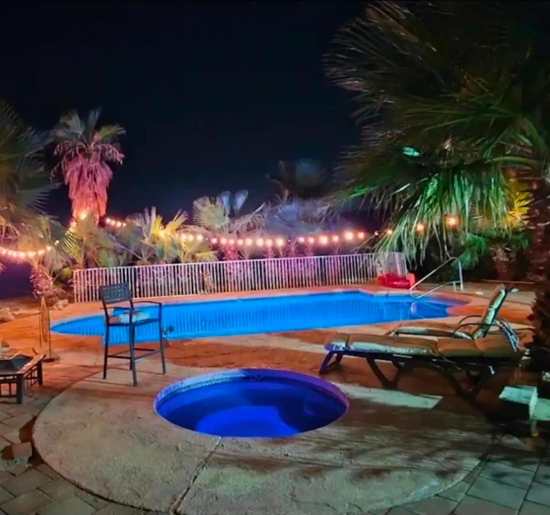 “Sphere In The Rocks” desert retreat w. cowboy pool, jacuzzi, fire pits, daybed, dining & BBQ! ★ “A magical space that encourages connection, reflection, and presence.”❤️ ✔️Architectural sound healing sphere ✔️ Recommendations → Concierge Chef & Sound Bath (ask us!) ✔️Fully equipped + stocked kitchen ✔️Reverse osmosis water filter ✔️Parking → driveway (4 cars) ✔️50 Mbps wifi + workspace ✔️Outdoor shower + tub + fire 3 mins → Joshua Tree National Park Entrance 10 mins → Downtown Joshua Tree