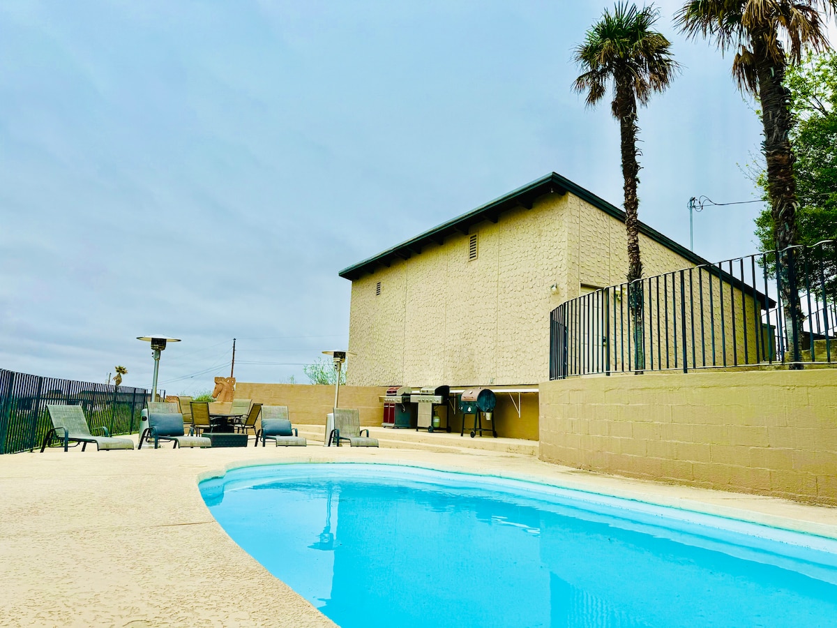 The guesthouse has a stunning view of Lake Amistad, breathtaking wildlife sightings, and direct access to lake hiking areas. King bed, smart TV, fast internet, and a twin bed. The living area includes a kitchen with all the essentials. Enjoy watching sunsets in heated indoor pool (92 deg). The guest house and pool are located on a quiet cul-de-sac with plenty of boat parking. Experience the tranquility! You have one patio for sunrises and a secondary patio for sunsets. Ideal for fishermen.