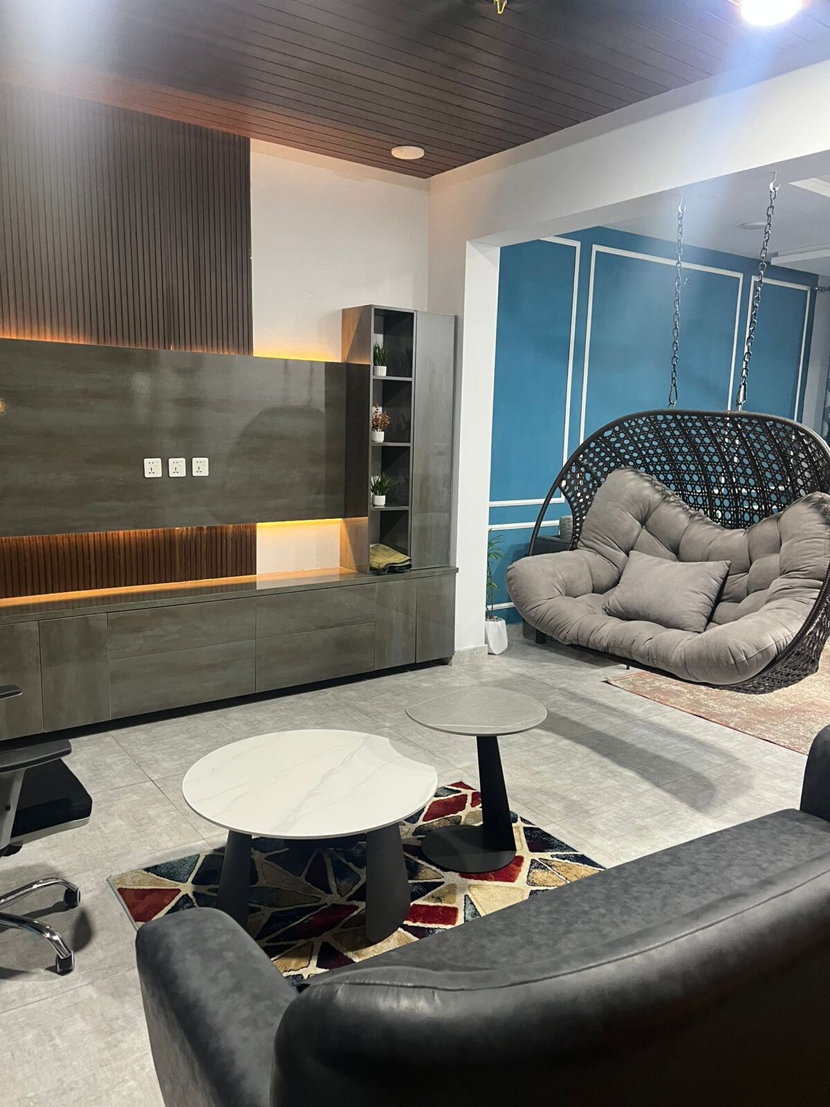Experience modern comfort and elegance at this designer 1 bedroom apartment in Eleven Heights 3, Bahria Town Phase 8. Enjoy high speed WiFi, a Netflix ready Smart TV, and effortless self check-in. Located in a peaceful gated community with 24/7 security. Just minutes from Giga Mall, Amazon Mall, and Phase 7 Food Street. Perfect for couples, professionals, or long term guests. Your serene escape in Bahria Town awaits, feel at home the moment you arrive.