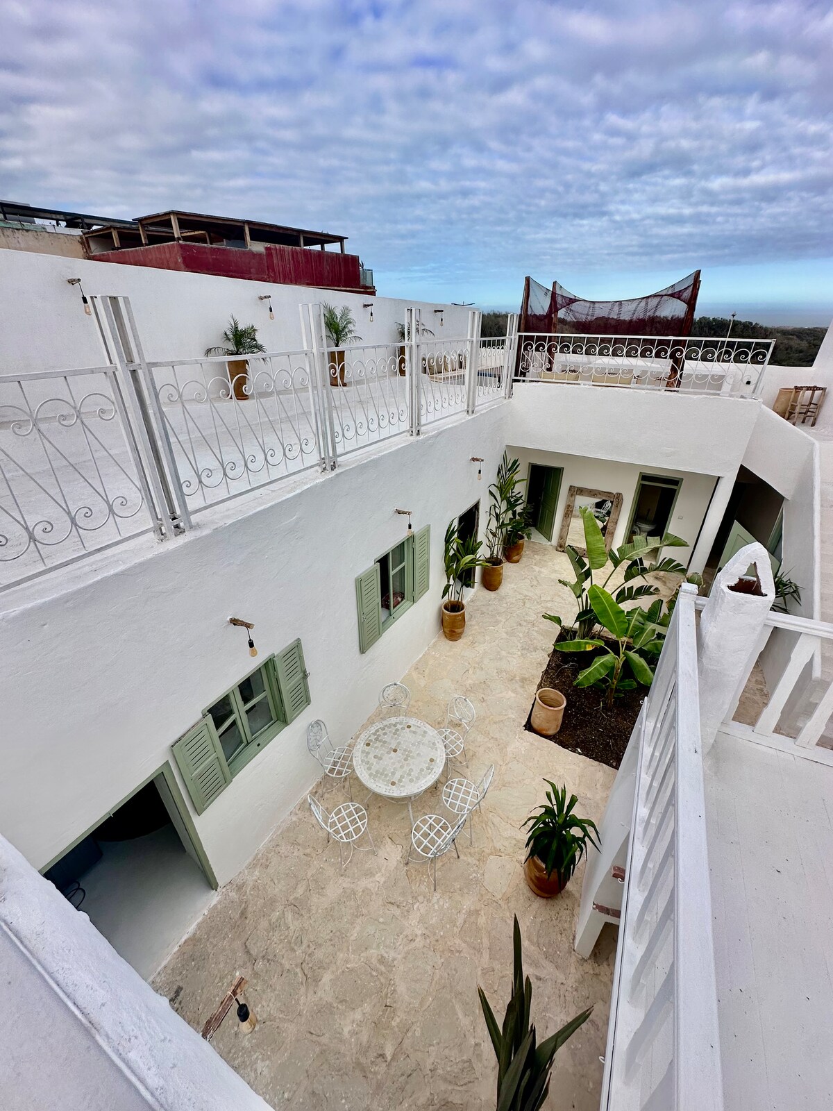 Ce logement unique, à l'entrée de la Médina, est un des plus beaux appartements-terrasse d'Essaouira ! Le dernier étage et le toit terrasse privatif sont situés au plus haut du quartier du Méchouar (maison bâtie en 1835) ! Ce "loft" de 140m² est aujourd'hui à la disposition des voyageurs privilégiés qui le réserveront. Terrasse aménagée & vue panoramique à 360° proche de tous les sites et commodités, ce qui facilite la planification de votre visite d'Essaouira.