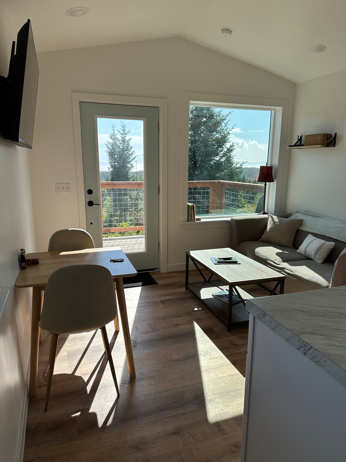 Our cabin is the perfect place to get-away to beautiful Homer, AK. Located centrally between town and Homer’s XC ski trail network at Ohlson Mtn. It is an authentic heavy timber hunting cabin that has been modernized to be warm & comfortable with a full kitchen and bath as well as a loft bedroom with a view of Kachemak Bay. It is private but located on a shared property with our home which is ideal for providing assistance with anything you may need.