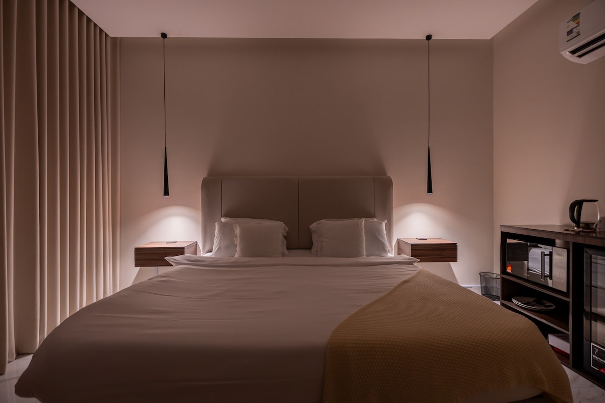 Experience luxury in our five-star hotel studio, designed for ultimate privacy and comfort. Enjoy a spacious master bed with daily-refreshed mattresses, and a bathroom stocked with premium amenities for a relaxing experience. The studio includes smart entry, high-quality bedding, and a coffee section with complimentary beverages for your first day. Added conveniences like hidden lighting Nearby amenities: - Grocery store - Laundromat - Pharmacy - Barber shop
