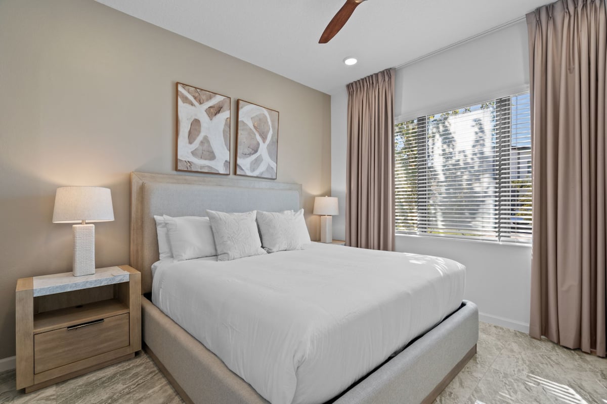 Bienvenue dans notre élégante oasis de Kissimmee, qui allie harmonieusement sophistication et ambiance décontractée. Votre séjour commence dans un appartement nettoyé par des professionnels pour votre plus grand plaisir. Découvrez des équipements de style resort : une piscine étincelante, un centre de fitness et des hamacs, offrant le luxe d'une retraite cinq étoiles. Idéalement situé à quelques pas des parcs à thème, des restaurants et des magasins. Réservez dès maintenant. Nous avons hâte de vous accueillir dans notre petit coin de paradis !