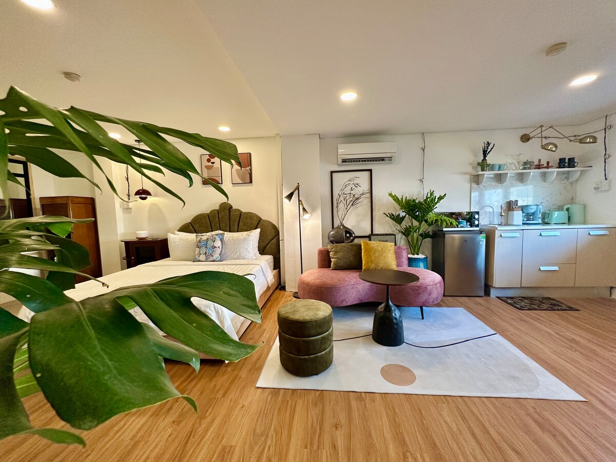Studio apartment with unique design located in a lovely alley in Saigon Center. The studio is located on the 2nd floor of a townhouse, of which the 1st floor is the lovely BeanThere cafe. It only takes a few minutes to reach attractions and nightlife activities. One breakfast (01 food and 01 drink) / guest / night in Beanthere cafe. We offer free housekeeping for bookings longer than 4 nights. If needed, you can notify 1 day in advance.