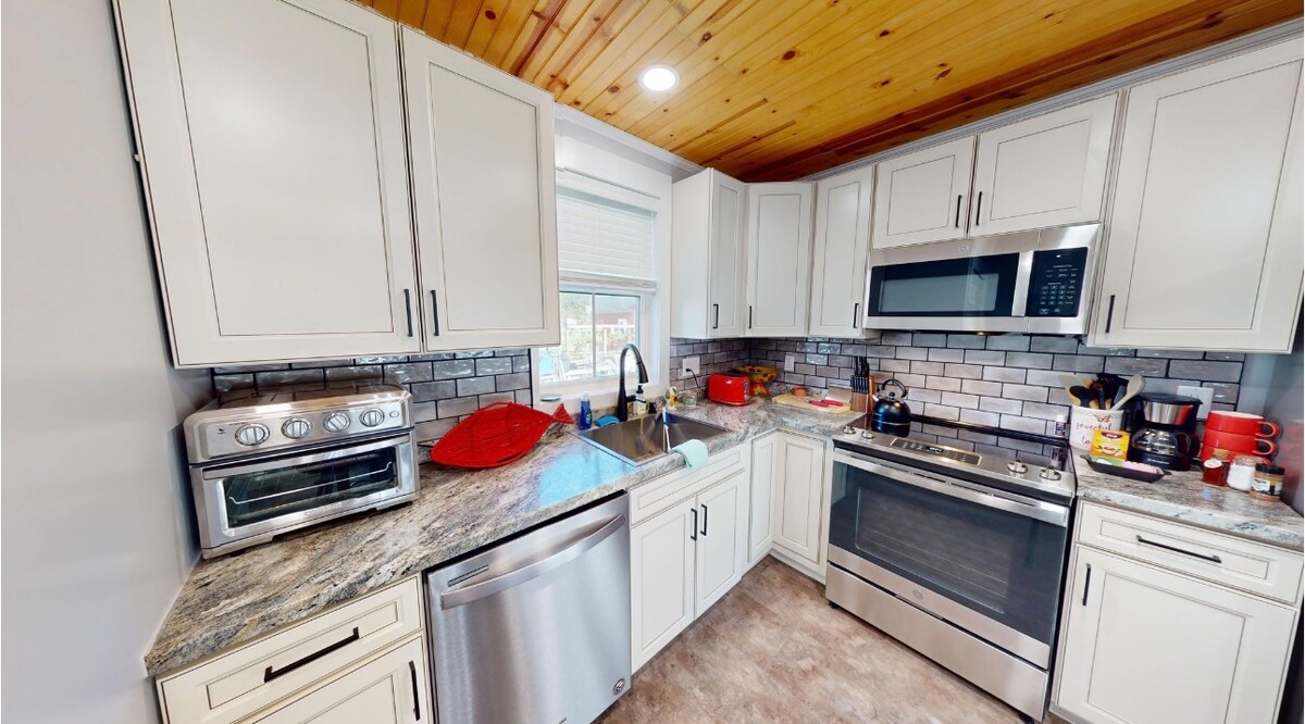 Évadez-vous dans votre coin de paradis privé niché sur 2,5 acres sereins avec une vue imprenable sur la rivière. Que vous soyez à la recherche d'une escapade paisible ou d'une retraite familiale mémorable, cette maison de 2900 pieds carrés offre le mélange parfait de confort, de nature et de détente. À l'arrière, le patio couvert est le rêve d'un artiste, avec un barbecue, un barbecue hibachi et un foyer confortable. Réservez votre séjour à Riverside Retreat et découvrez la beauté, la paix et l'espace dont vous avez envie !
