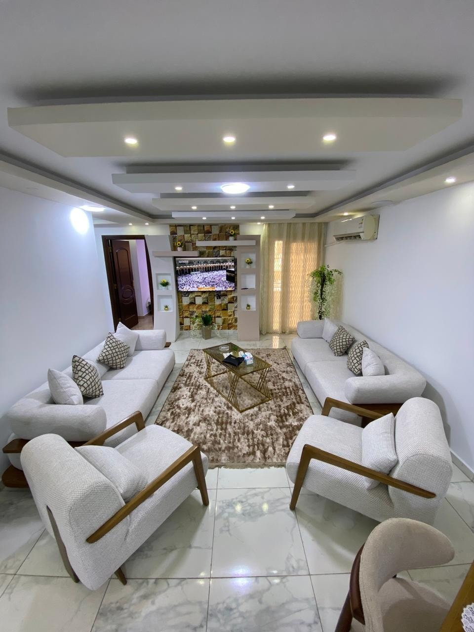 Appartement ✨élégant dans un immeuble calme et sûr au centre de Mohandessin✨. L'appartement est situé sur Medina Street, à quelques pas de la rue de la Ligue des États arabes. Convient pour le tourisme, le travail ou un court séjour confortable. Entièrement meublé, avec un salon confortable, 3 chambres calmes, une cuisine moderne et 3 salles de bains propres. Parfait pour les familles et les groupes, avec un design moderne et un équipement complet qui garantissant un séjour confortable et unique. L'endroit est proche du Musée égyptien🏛, de la Tour du Caire🗼, de l'Opéra, de Khan El Khalili, du Château de Salah El Din🏰, de la Corniche du Nil🛶, et également👣 à quelques pas de la rue de la Société des Nations, des restaurants et des cafés