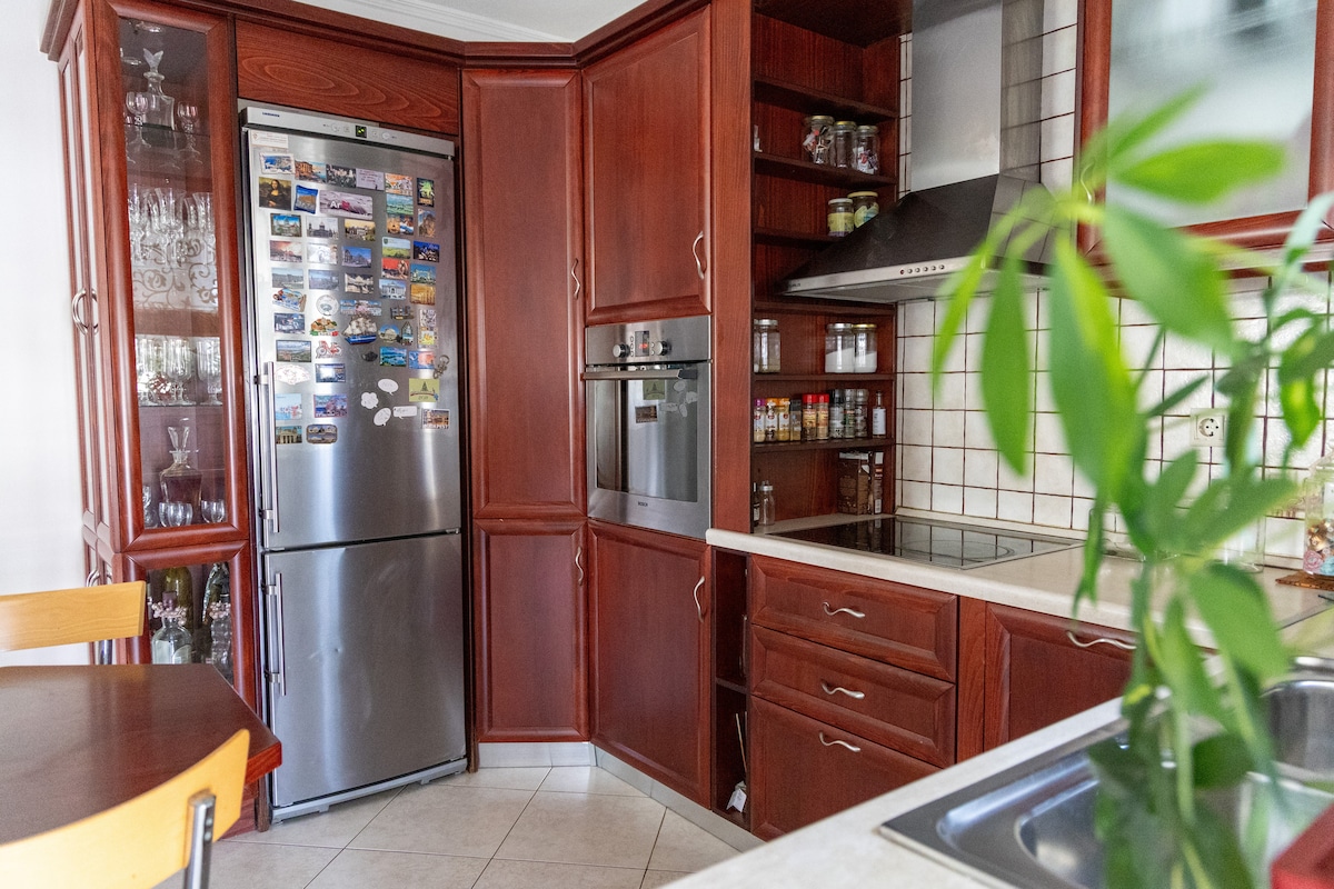 Profitez des choses simples dans cet espace de vie paisible et spacieux. L'appartement de 55 m², situé au 1er étage, est situé dans un point central de la ville, à 10 minutes à pied des places principales. Il dispose d'une chambre avec un lit double confortable, d'une armoire et de la climatisation, d'une salle de bain privée avec douche à remous, d'un salon assez spacieux avec salle à manger et d'une cuisine avec tous les appareils nécessaires pour cuisiner. Le salon dispose également d'un canapé convertible en lit double.