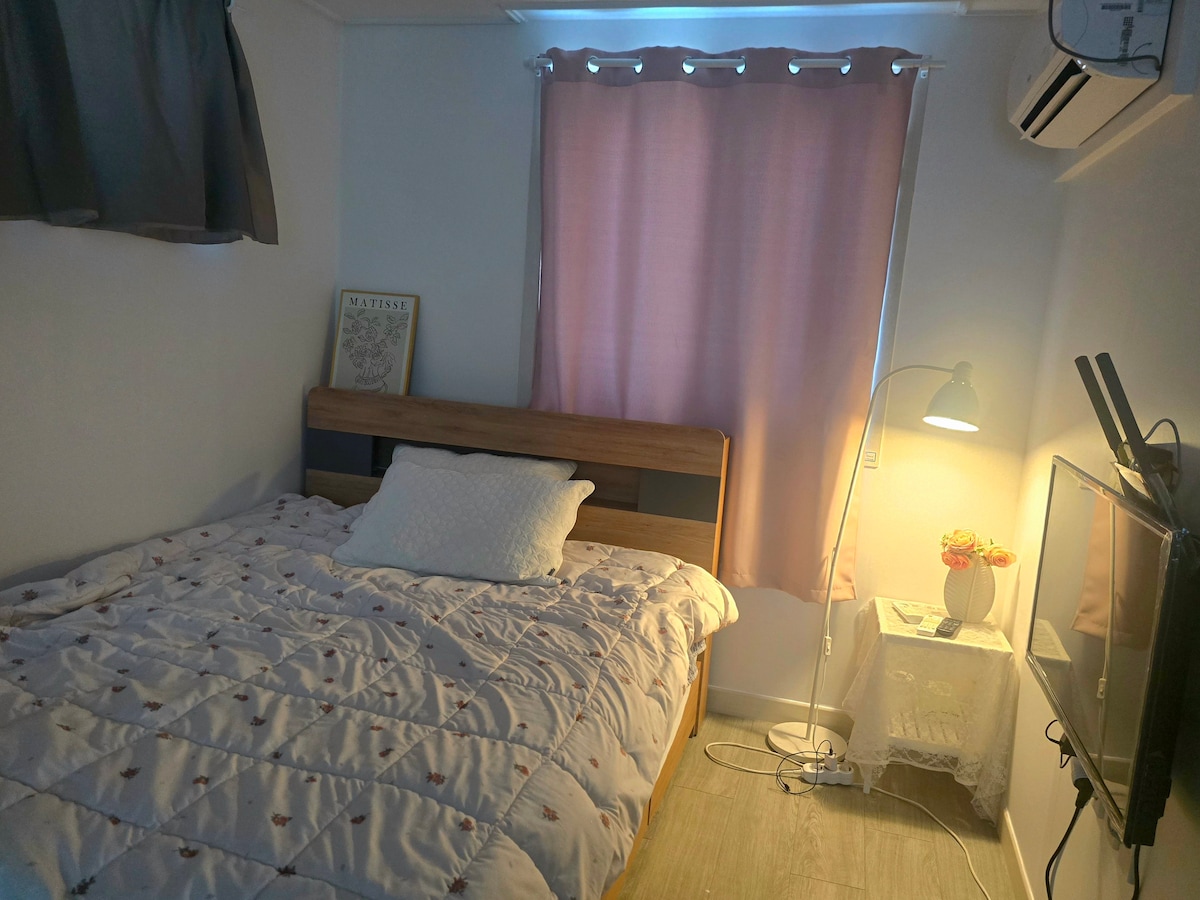 C'est une belle pièce avec un bâtiment propre et assez neuf. L'aéroport de Daegu, Exco et la gare de Dongdaegu sont à proximité, c'est donc un bon endroit pour les voyages d'affaires et les voyages. La gare de Dongchon, ligne de métro n ° 1, est à trois minutes à pied et vous pouvez vous rendre au parc d'attractions de Dongchon.