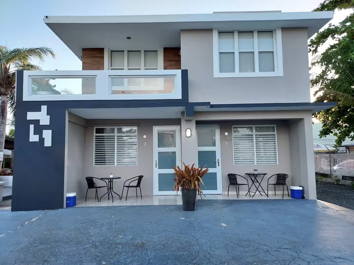 Détendez-vous avec toute la famille dans cette retraite paisible en bord de mer. Profitez d'une vue imprenable sur l'Atlantique et d'une piscine de style resort avec accès direct à la plage. Cet appartement 2BR, à côté de l'Embassy Suites Dorado del Mar Resort, dispose d'une chambre familiale confortable, de la climatisation dans chaque pièce, de deux salles de bains complètes, d'une connexion Wi-Fi rapide et de téléviseurs intelligents dans chaque pièce. Des panneaux solaires et une citerne d'eau assurent une commodité accrue. De plus, profitez de la sécurité d'un parking fermé pour un séjour sans souci.
