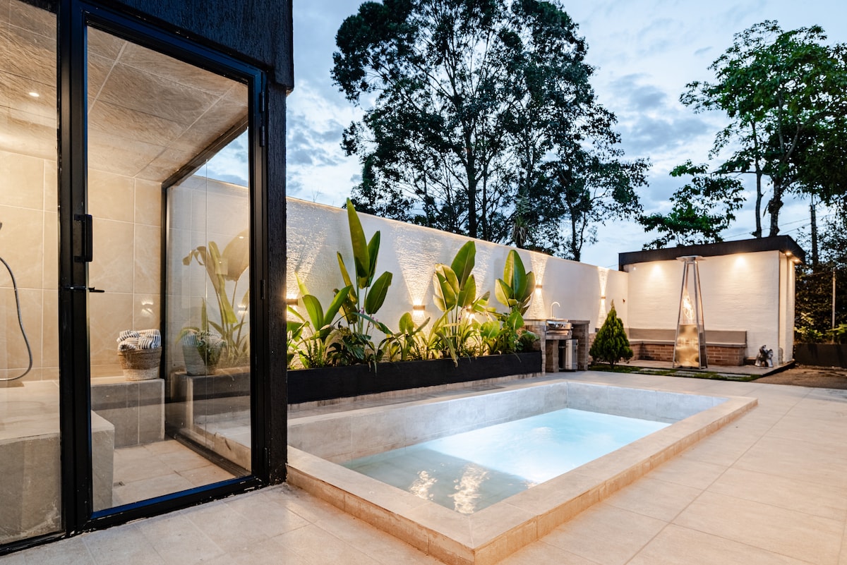 La casa cuenta con: 3 habitaciones • 1 habitación con cama matrimonial y baño privado. • 2 habitaciones con camas y closet. • Cocina equipada con utensilios y todo lo necesario para cocinar. • Baño con ducha • Jacuzzi con agua caliente • Sauna • Turco • Zona BBQ • Televisión en la sala. • Servicio de internet Wi-Fi. • Sillas en la isla de la cocina y comedor con 4 puestos. • Sofá en la sala. • Zona de lavandería con lavadora. • Parqueadero privado cubierto.