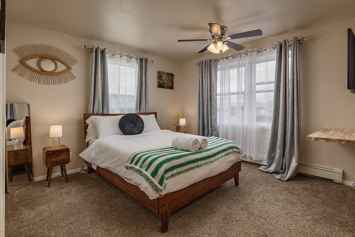 C'est l'endroit idéal pour les Alaskains qui séjournent en ville pour les achats de Noël. Mon logement est dans le centre-ville d'Anchorage avec vue sur l'entrée ; restaurants, galeries d'art à 1-2 pâtés de maisons ; il est nouvellement construit et à proximité des sentiers pédestres. C'est un bon point d'ancrage pour les couples, les aventuriers en solo et les voyageurs d'affaires. C'est le rez-de-chaussée d'un immeuble de 2 logements.