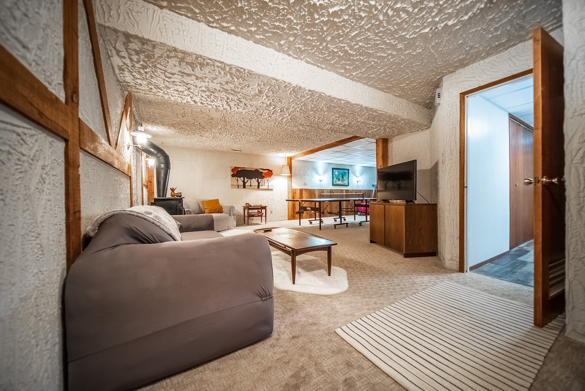 Soyez dans les montagnes en une heure ! Suite au sous-sol avec entrée privée, beaucoup de stationnement dans la rue, dans un quartier calme à 3 minutes des commerces et des restaurants, parfait pour les couples, les amis ou la famille. Climatisation pour l'été et chauffage au sol en hiver pour un confort total. Kitchenette bien équipée avec four à convection/friteuse à air et double plaque à induction avec casseroles et poêle à frire. De nombreux sièges dans le salon et la salle à manger font de cet endroit élégant un endroit idéal pour les groupes. Lave-linge/sèche-linge disponible sur demande.