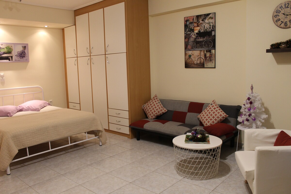Magnifique studio situé dans un quartier calme et sûr, à 10 minutes du centre du port du Pirée. L'appartement a tout ce dont vous avez besoin pour vous assurer que vous passez un bon moment. A 5 minutes de la maison, il y a un arrêt de bus, 2 supermarchés, une pharmacie, une cafétéria, une confiserie. La ligne bleue de la station DE MÉTRO NIKAIA est à 10 minutes à pied. Le studio est dans un quartier calme à 10 min du port du Pirée. A 5 min de la maison se trouve l'arrêt de bus, 2 supermarchés, pharmacie, cafétéria et confiserie.