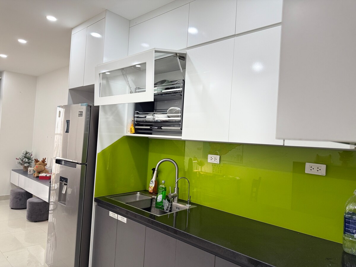 Baby Fat House 23 - Appartement confortable de 2 chambres au cœur de Vinh ! 23e étage, belle vue, près de la gare, VRC. 2 chambres, 2 WC privés, cuisine entièrement équipée, wifi, lave-linge séchant. Serrure électronique pratique. Idéal pour la famille, les amis pour explorer Vinh ! C'est un appartement bien équipé à louer dans la ville de Vinh, c'est la seule maison d'accueil à Vinh pour servir les touristes lorsqu'ils voyagent à Nghe An de manière réfléchie comme à la maison