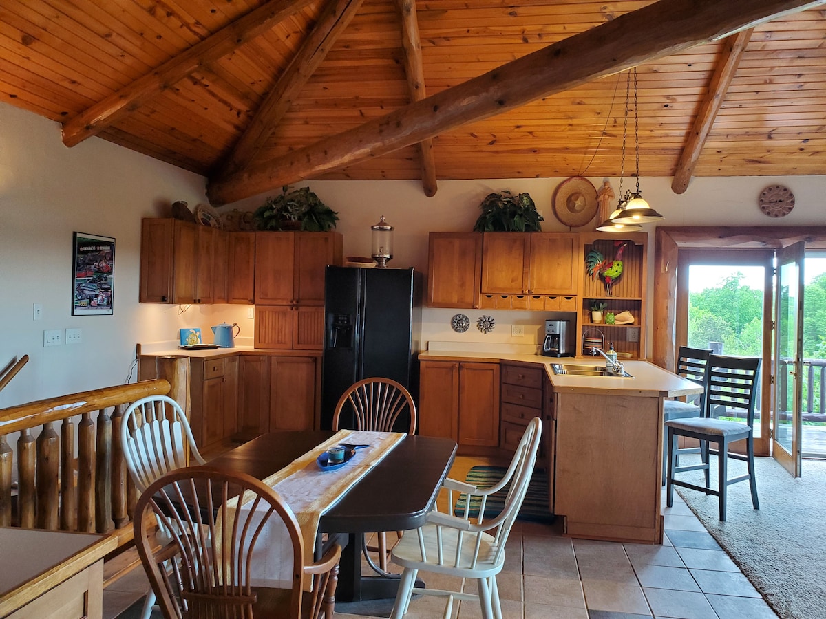Slow down at Fraser Fir log cabin, built in 1958 on Kettle Moraine Lake. In the summer, enjoy quiet moments watching the sun set from the front porch, then relax by the fire pit under a sky full of stars. Fish from the dock, kayak around the lake, or bring your boat to soak up the sun. In the winter, grab your ice-skates or ice-fishing gear and head out on the lake. With countless trails nearby, the hiking options are limitless and beautiful in every season. Your next adventure awaits.