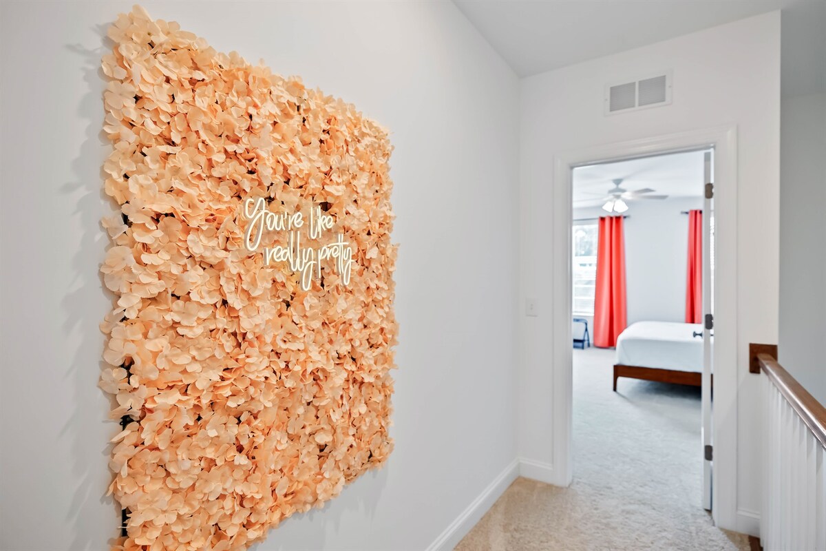 Créez des souvenirs inoubliables dans cette maison spacieuse et magnifiquement conçue pour vous et 9 invités ! Parfait pour les réunions de famille, les événements sportifs et les occasions spéciales. Situé au cœur du centre-ville de Durham, à seulement 4 minutes de Duke, du stade Bulls, du DPAC et du Tobacco Trail. Installez-vous confortablement autour du foyer, profitez d'un barbecue ou détendez-vous avec du pop-corn frais et des disques vinyles. Retirez-vous dans des lits luxueux + draps et rendez-vous au bar à café gastronomique le matin. Accès gratuit à la salle de sport voisine avec piscine. 4 matelas pneumatiques et chargeur EV disponibles.