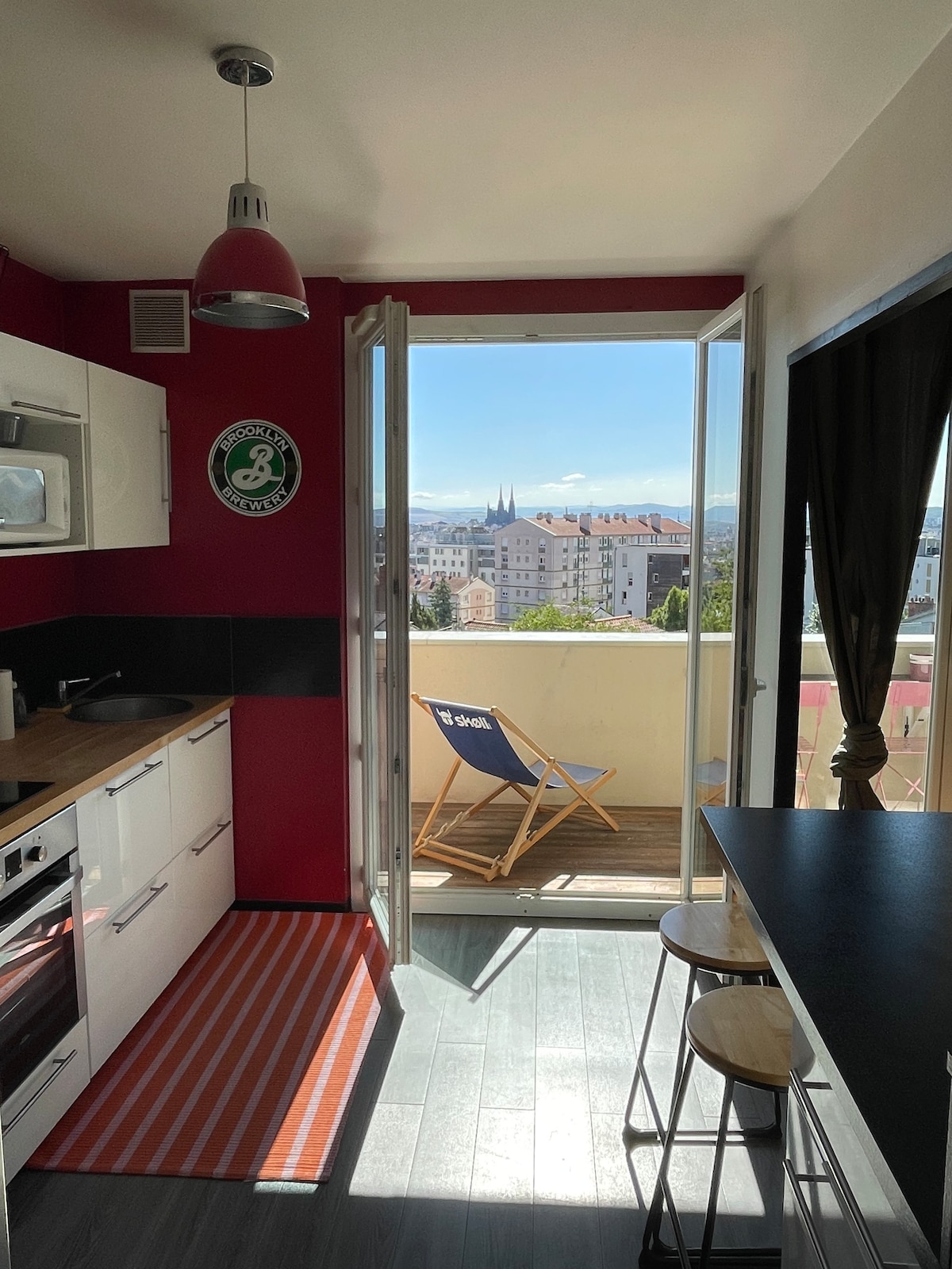 PARKING GRATUIT ! ARRIVÉE AUTONOME POSSIBLE Charmant duplex lumineux de 40 m² totalement refait à neuf! Idéalement situé, à 5mn à pied de la place de Jaude et 15mn en voiture du Puy de Dôme et des randos Chambre en mezzanine avec une literie de qualité et disposant d un grand dressing, cuisine toute équipée et canapé lit permettant jusqu'à 2 voyageurs supplémentaires Transport et nombreux commerces à proximité!