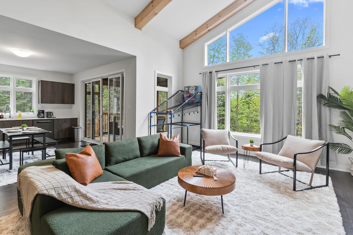 Évadez-vous dans notre cabane unique en forme de A, nichée parmi les arbres enneigés de Muskoka, près de Huntsville, en Ontario. Ralentissez, installez-vous confortablement et profitez de la beauté de l'hiver. Passez des soirées au coin du feu, détendez-vous sous les étoiles dans le jacuzzi ou partez à l'aventure : ski, raquettes, patinage et randonnée sont tous à proximité. Les incontournables - Bain à remous et cheminée - Raquettes à neige fournies - Vues imprenables sur la forêt enneigée - Pass gratuit pour les parcs de l'Ontario - 10 min à pied de la piste de ski et du lac 📷 Voir plus @door25stays pour des photos et de l'inspiration !