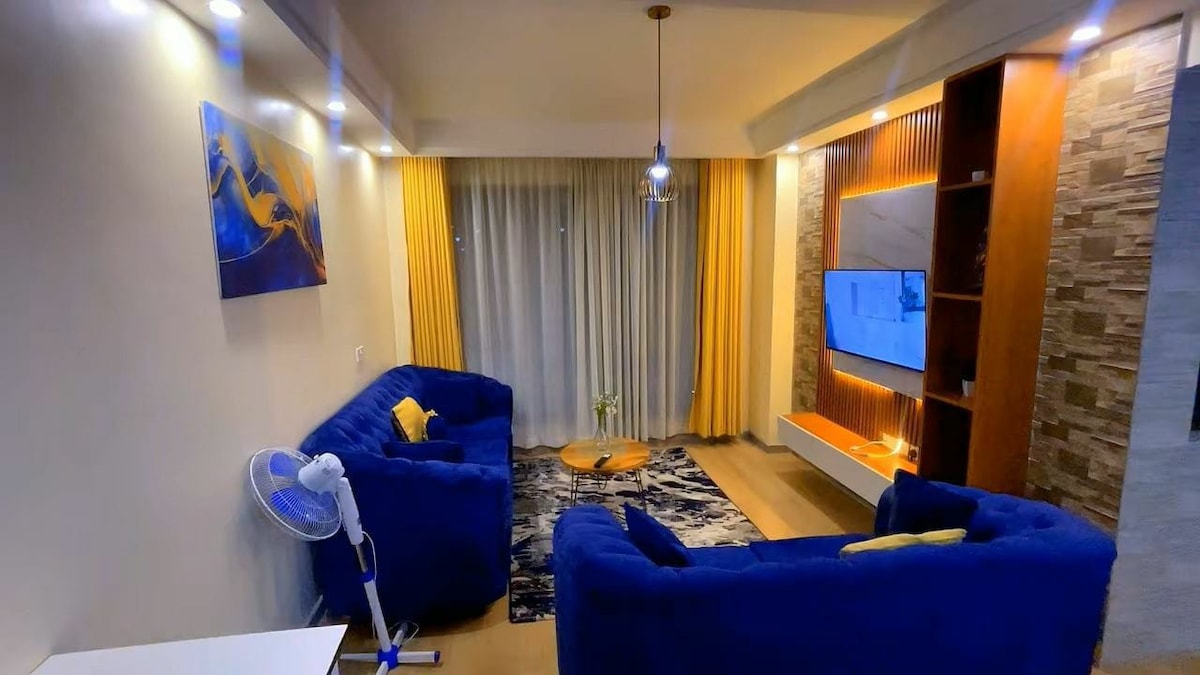 Stylish extra modern apartment, spacious & comfortable, with two bedroom & all en-suite bathroom, luxurious extra king size bed, eloquent 6 seater dining room, Netflix-55inchTV, balcony, kitchen, Washer and Drier. All amenities provided, including unlimited Fast WiFi and business facilities. Situated in a quiet leafy suburb, but also conveniently close to Westgate, Sarit and Lavington shopping malls, restaurants, business hubs, CBD and few meters walk away from Westlands nightlife.