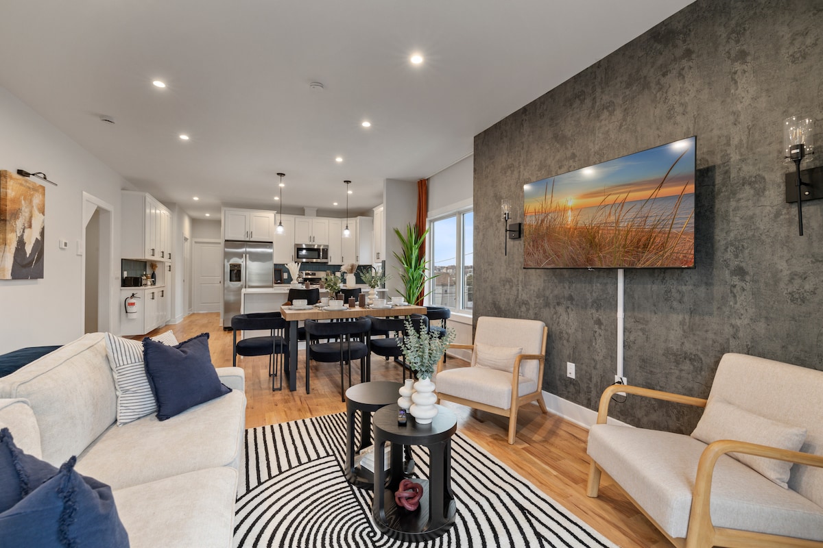 2 chambres modernes dans le quartier animé de Harrison, à 14 minutes à pied de PATH pour un accès facile à New York ! Les hauts plafonds et la lumière naturelle mettent en valeur l'espace. Détendez-vous avec des couettes moelleuses, des draps doux et des téléviseurs intelligents dans chaque chambre. Parfait pour les familles, les travailleurs à distance ou les groupes ! Marchez jusqu'à la Red Bull Arena, le train, les bars et les restaurants, ou visitez American Dream en 14 minutes. ✔️ 1 place de stationnement gratuite ✔️ 5 lits : 1 king size, 2 queen size, 2 jumeaux ✔️ Cuisine complète Air climatisé✔️ central ✔️ Wi-Fi rapide + bureau Réservez maintenant pour le confort et le style