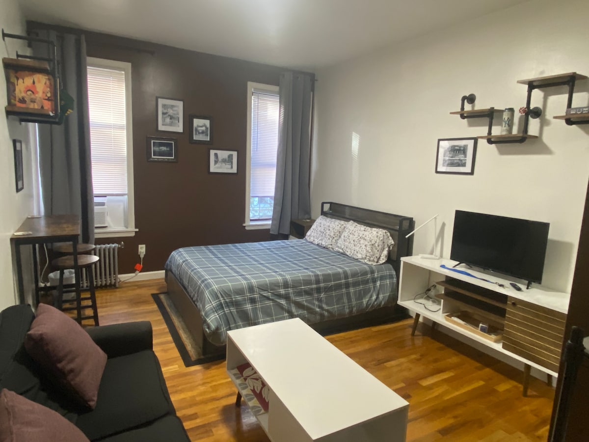 Simple Bronx Studio – Affordable and Convenient This no-frills studio is perfect for budget-conscious travelers or remote workers. It features a bed, a full pullout king couch, a kitchen, and a fridge, comfortably accommodating up to 4 guests. Located just a 10 minute walk to the B/D trains, 15 min to the 4 train, and near Citi Bike, it’s easy to explore the city. Only 1 train stop from Yankee Stadium, this quiet and functional space is a great value. Book now to secure your stay!