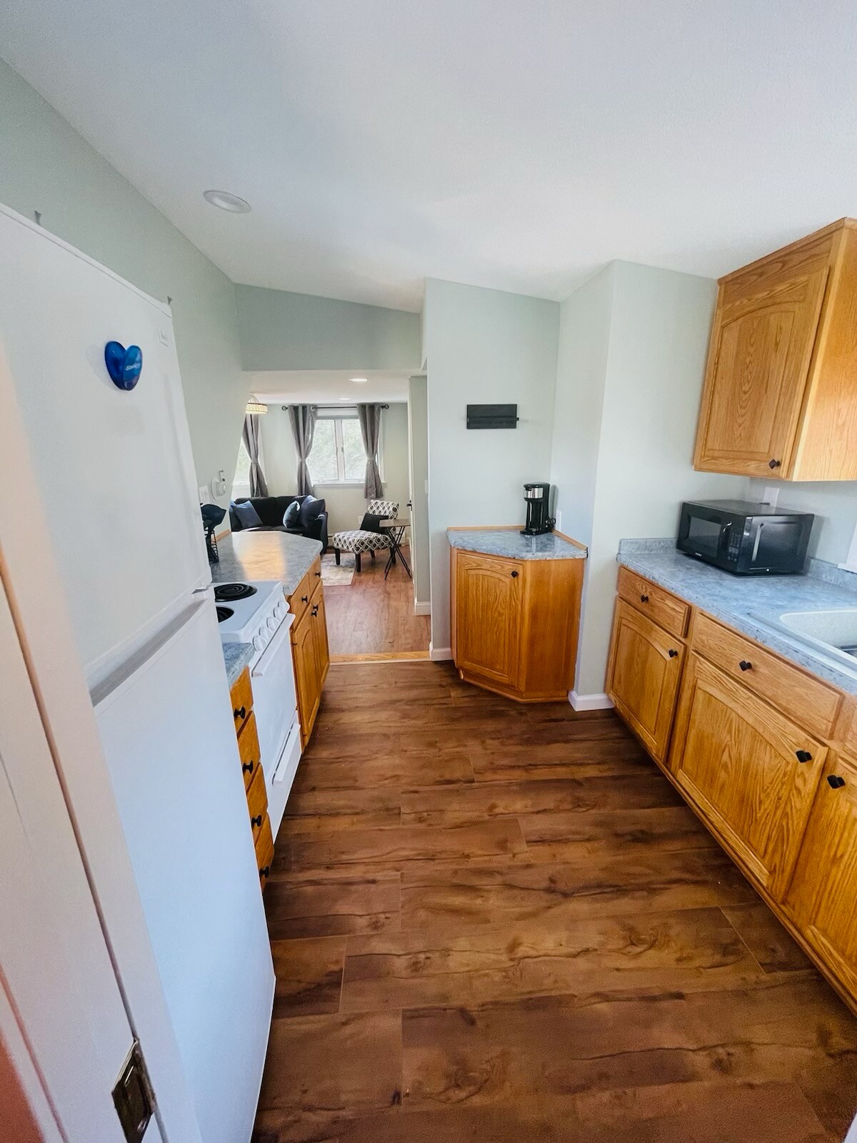 Forget your worries in this spacious and serene space with room for 8. The entire first floor is yours to enjoy and there aren’t any shared spaces. Relax in the backyard or on the porch. 2 full bathrooms are yours to relax and enjoy. There’s a freshly remodeled bathroom in the master bedroom with walk in shower and a bathtub in the 2nd bathroom. Fully stocked kitchen awaits your inspiration. Much shopping awaits you and all the store are within 10 minutes away from you. BDL is 20 minutes away,