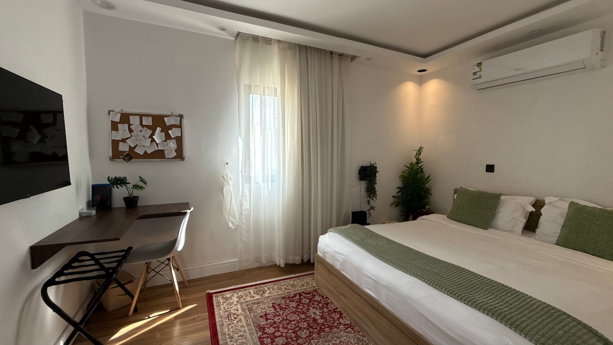 Oubliez vos craintes dans cet espace spacieux et calme. Invitez vos voyageurs au Majlis pour leur offrir une hospitalité exceptionnelle. Il y a le Wi-Fi, une cuisine, une salle de bain avec douche, des tasses, des mugs, de l'eau et un grand écran intelligent