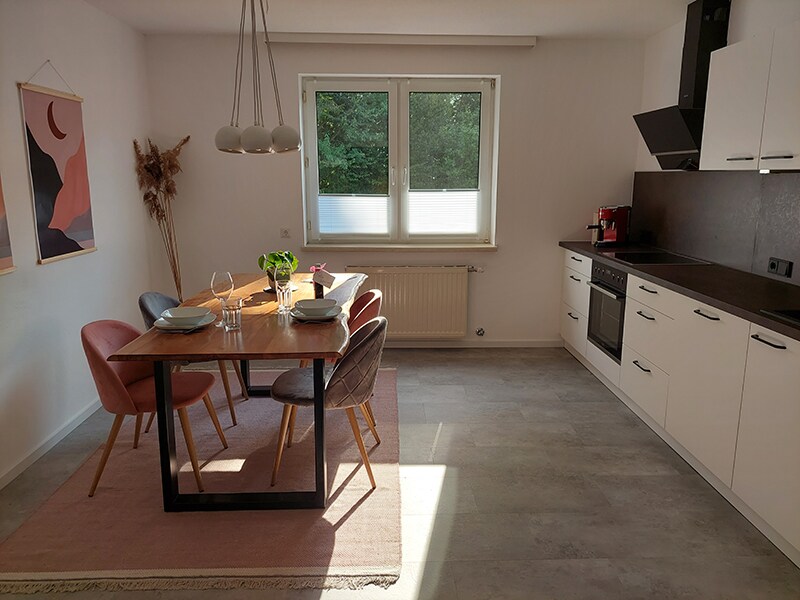 Appartement privé (env. 50 m²) joliment meublé et décoré dans la nature et pourtant à seulement 1,5 km du centre-ville de Vöcklabruck. 2 chambres (1 lit de 180/200 et 1 lit de 90/200) pour un total de 3 personnes Coin repas confortable, cuisine entièrement équipée, machine à café avec dosettes disponible. Wifi, parking devant la maison. Terrasse privée avec vue sur Traunstein. Salle de bains avec douche, wc et lavabo.