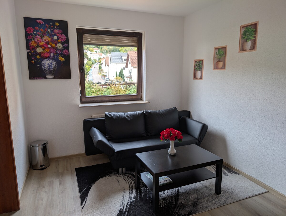 ⭐ Environ 15 minutes de Heidelberg ou Mannheim – idéal pour les affaires et les loisirs Emplacement ⭐ calme, idéal pour se détendre Parking public⭐ gratuit directement à l'appartement ⭐ Deux lits confortables à ressorts (1,80 m et 1,60 m) + canapé-lit ⭐ Balcon avec soleil du soir Cuisine ⭐ entièrement équipée avec machine Nespresso Wi-Fi ⭐ rapide et télévision connectée de 50" ⭐ Lave-linge : idéal pour les séjours plus longs