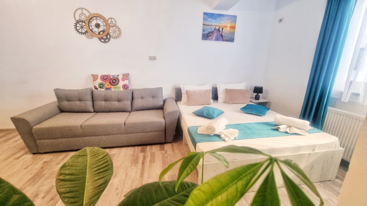 Ce Blue Pearl est situé dans l'endroit calme d'Eforie Nord(côté sud). Vous avez 10 minutes à pied de la plage la plus proche ( Roxi Beach) et les plus belles plages avec de l'eau turquoise se trouvent dans la partie sud. Pour 2 minutes à pied, vous trouverez le supermarché Lidl sur le côté gauche et sur le côté droit, c'est la gare ! À 5 minutes à pied du parc , à 10 minutes à pied du centre !