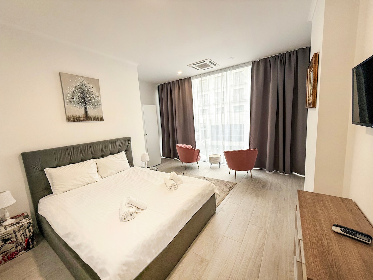 L'appartement est situé sur le boulevard principal de la vieille ville, à 5 minutes à pied de la plage de Constanta, de la plage moderne et de la plage NeverSea. À quelques minutes à pied, vous trouverez les principales attractions touristiques : le musée d'histoire et d'archéologie, l'édifice romain, la Grande Mosquée construite avec le 1er roi de România, Carol le 1er en hommage à la communauté musulmane locale, la cathédrale orthodoxe dédiée aux saints et à Paul, l'aquarium, le planetariu, le phare génois.