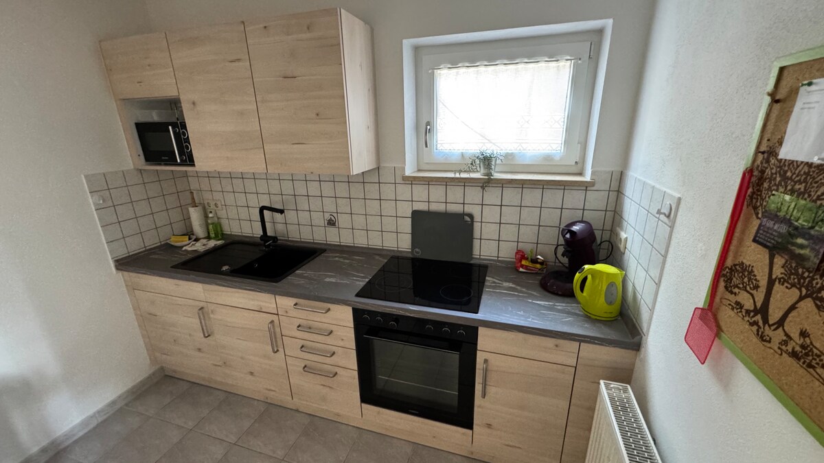 Appartement confortable avec entrée séparée, salle de bain et cuisine privées, TV et Wi-Fi. Les 2 chambres sont équipées de 4 lits. Un lit bébé est également disponible si nécessaire. 2 armoires offrent de la place pour leurs vêtements. La salle de bain dispose d'un WC et d'une douche, ainsi que d'une petite machine à laver et d'un séchoir à linge. La petite cuisine dispose de 2 plaques de cuisson, un réfrigérateur, une bouilloire et une machine à café (incl. Café et thé).