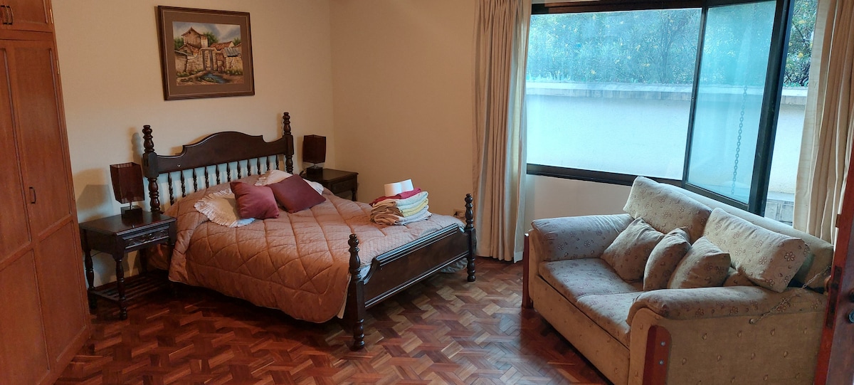 Chambre confortable et élégante avec salle de bain privée dans un quartier très central et résidentiel. Accès facile à tous les types de transports en commun, très proche du téléphérique. Dans les environs, vous trouverez des restaurants, des supermarchés, des parcs, une salle de sport et des commerces de toutes sortes. En face de l'ambassade d'Argentine et à quelques pas de l'ambassade du Japon. Les ambassades des États-Unis, d'Espagne et du Brésil sont également dans le même quartier à quelques pâtés de maisons.