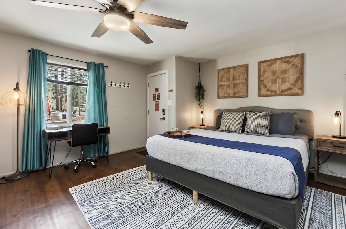 Bienvenue au Tahoe Mountain Inn, un hébergement de charme confortable au cœur de South Lake Tahoe. Chaque chambre dispose d'une décoration chaleureuse inspirée de la montagne et d'un confort moderne, offrant une base de détente pour toutes vos aventures à Tahoe. Il y a une cuisine commune sur place pour cuisiner et manger. Idéalement situé au 2644 Lake Tahoe Boulevard, nous sommes à quelques minutes des plages, des stations de ski, des sentiers de randonnée et des excellents restaurants locaux. Vous apprécierez le confort, la commodité et le style Tahoe dans chaque pièce.