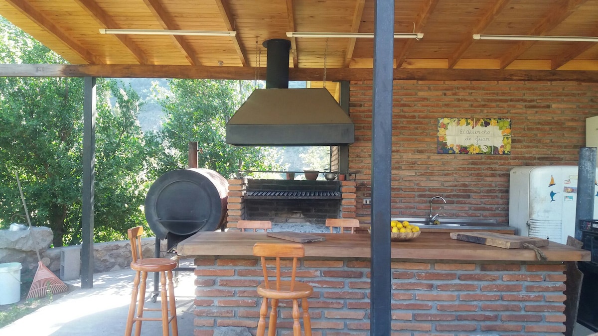 Petit chalet rustique,d'une ambiance, SANS cuisine, avec barbecue sur la terrasse. Situé au milieu de grands arbres, à quelques mètres de la rivière Maipo avec un accès exclusif au chalet. Il dispose d'une terrasse et d'un parking privé. Hébergement idéal pour les couples et les aventuriers, pot d'eau chaude sur la terrasse, pour se détendre au son de la rivière sous un ciel étoilé. Le pot est à usage privé et sans horaires.