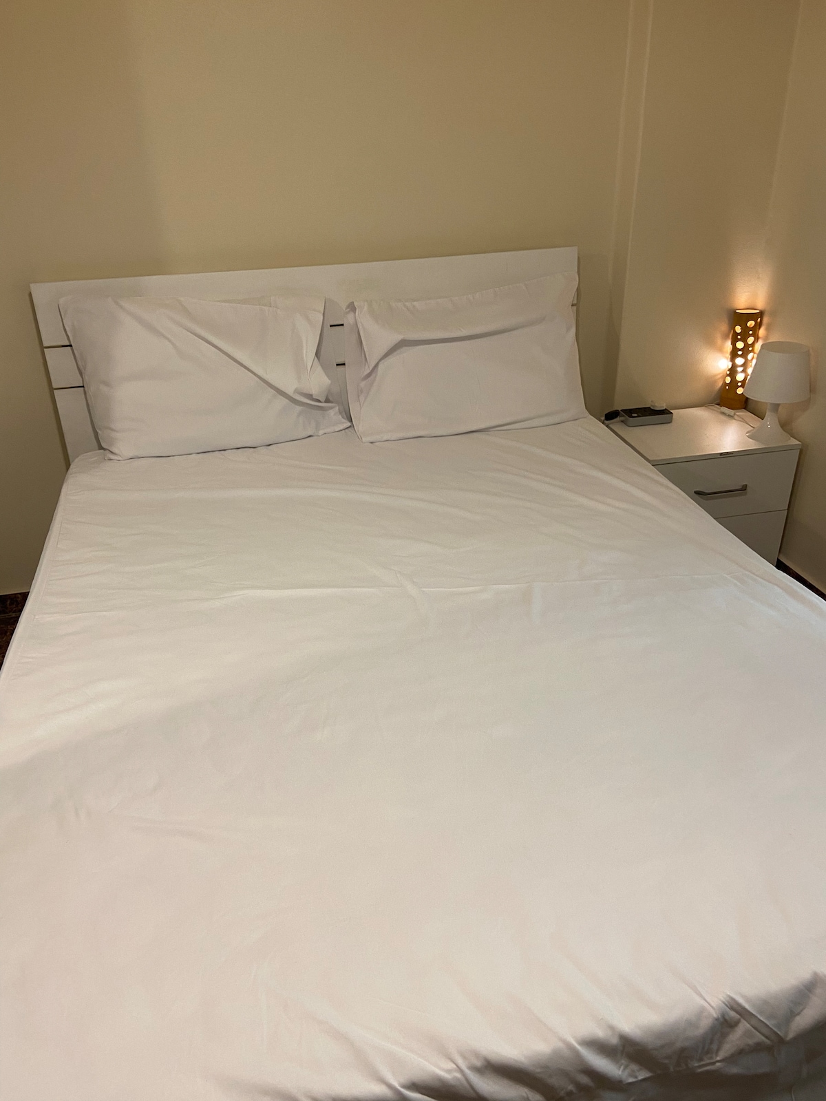 This stylish apartment is located on the fourth floor (with elevator access) and offers complete comfort with air conditioning, high-quality appliances, fast Wi-Fi, and Netflix. Situated within the Golden Gates compound, the apartment ensures privacy and a prime location just 10 minutes from Nasr City, New Cairo, and Cairo Airport, and 20 minutes from downtown. Enjoy an unforgettable stay with our exceptional hospitality service. .