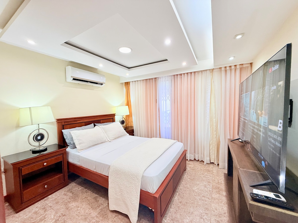 Profitez d'un bel appartement confortable à Unioro, l'un des secteurs les plus exclusifs et les plus sûrs de Machala, à quelques pas de l'hôtel Oro Verde. Idéal pour une personne ou un couple à la recherche de confort, d'intimité et d'un bon emplacement. Il dispose d'un lit + 1 canapé-lit, de la climatisation, d'une grande télévision, d'un salon, d'une salle à manger et d'une cuisine équipée avec réfrigérateur, micro-ondes et ustensiles. Fenêtres avec lumière naturelle, salle de bain privée impeccable, accès à la piscine et sécurité permanente.