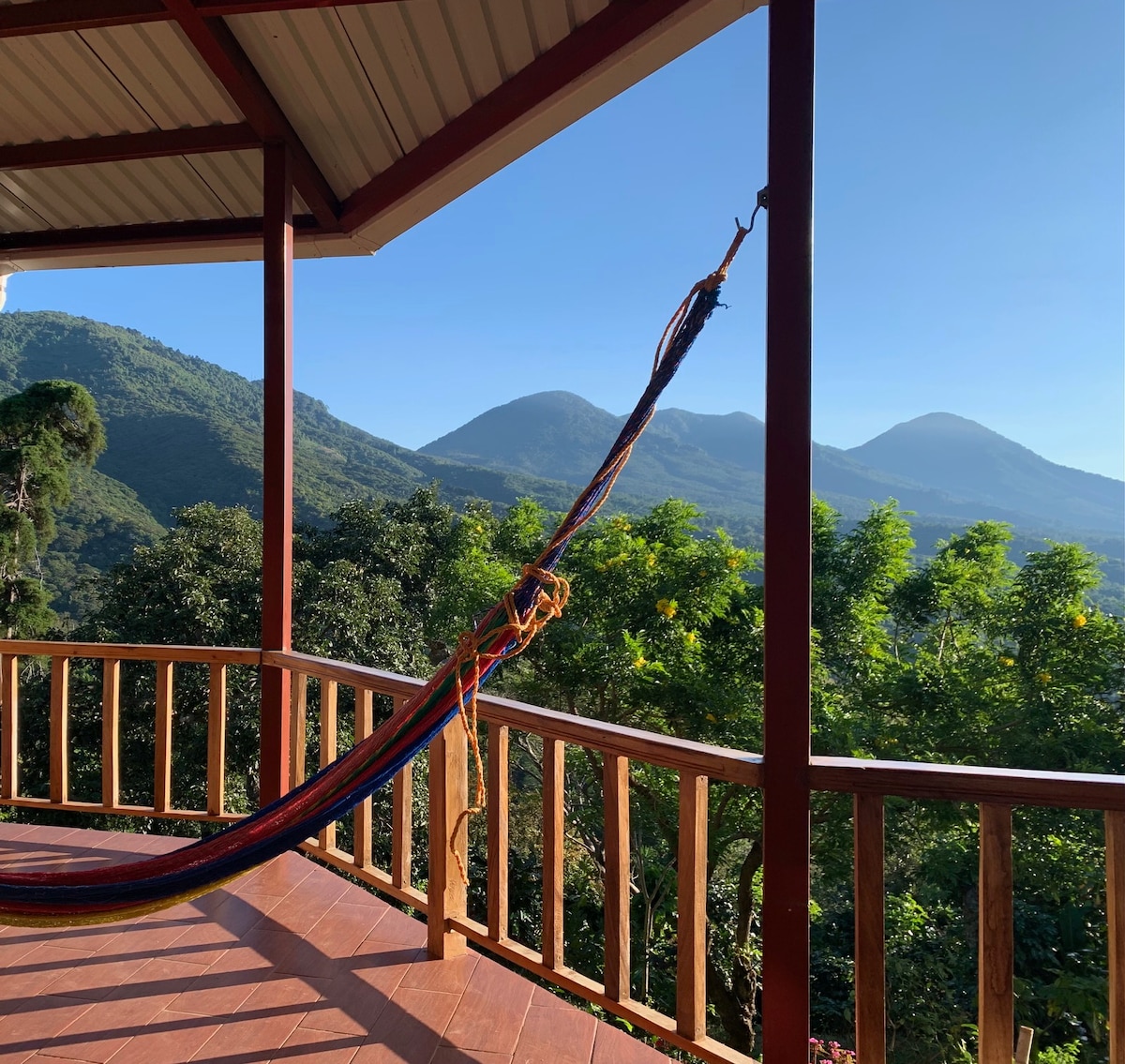 Bienvenue dans votre refuge confortable en pleine nature ! Notre charmante cabane vous offre l'escapade parfaite. Entouré de sérénité et de vues imprenables, ce joyau est idéal pour se détendre. Réservez maintenant et plongez dans la paix rurale offerte par ce coin unique ! - Grande terrasse avec vue panoramique sur la cordillère Apaneca Ilamatepec. - Pas de télévision par câble