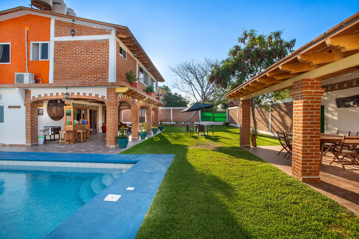 Profitez d'une escapade dans notre maison confortable à Xochicalco, à proximité des pyramides. Idéal pour les familles, les couples et les animaux de compagnie. Détendez-vous à la piscine (si vous avez besoin de climatisation a un coût supplémentaire bas), reposez-vous dans les grandes chambres et préparez de délicieux repas à la cuisine équipée ou au rôtissoire de type argentin. Commodités comprennent salle, salle de bain complète, garage et jardin. Le climat chaud de Xochicalco garantit une expérience inoubliable à toute époque de l'année !